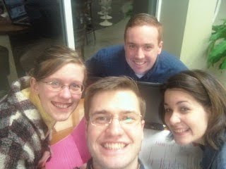 This is what I'll call the "inner circle." :D Andrew is missing in this pict, but the 5 of us basically do everything together. Its me, Christy, Ben and Getty. (His real name is Caleb, but no one calls him that.) We have a blast. In this picture we are "studying," can't you tell? :D