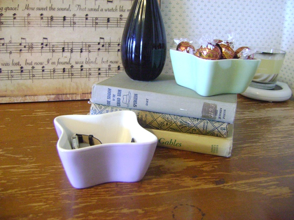 I deposit my watch and jewelry into one at the end of the day, and the other is full of hazelnut truffles. {Seriously, who knew they made those things? Uh-mazing}